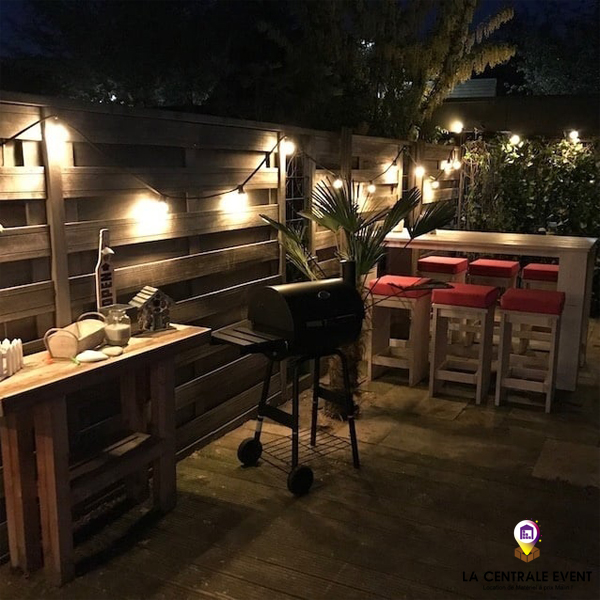 Guirlande guinguette professionnelle équipée de 45 ampoules LED de 2W de couleur blanc chaud (2650K). Cette guirlande habillera aussi bien vos intérieurs que vos extérieurs grâce à son étanchéité norme IP44. Alimentation sur prise secteur 230V. Coloris: BLANC chaud – Dimensions: L25m / Poids: 6kg